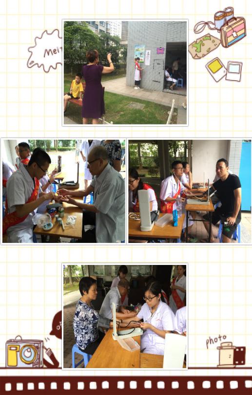 活動(dòng)中,同學(xué)們懷著飽滿的熱情分工合作,用自己的專業(yè)知識(shí)服務(wù)前來咨詢的居民。達(dá)道社區(qū)的居民對于我們的到來十分的歡迎,前來測血壓、量血糖的居民絡(luò)繹不絕,表示了對于此次義診活動(dòng)的充分肯定。在活動(dòng)中我們發(fā)現(xiàn)大部分的居民都具備一定的健康常識(shí),所以配合度很高,活動(dòng)進(jìn)行的十分順利。