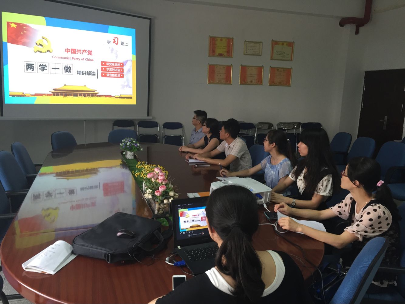 陳瑜老師從三方面做了專題報告,一是中央為什么要開展“兩學一做”學習教育;二是“兩學一做”學習教育解決什么問題?三是“兩學一做”學習教育怎么學,怎么做?接著,各位黨員教師就自己對于“兩學一做”的理解以及怎樣將“兩學一做”的思想貫徹到自己的日常生活工作中發(fā)表了自己的看法。