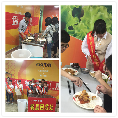 為了培養(yǎng)大學(xué)生養(yǎng)成良好的習(xí)慣,提高同學(xué)們自送餐盤的積極性,藥學(xué)系學(xué)生會于2015年10月28日在明湖餐廳開展“讓餐盤回家”活動(dòng),藥學(xué)系兩委會成員積極參與。
