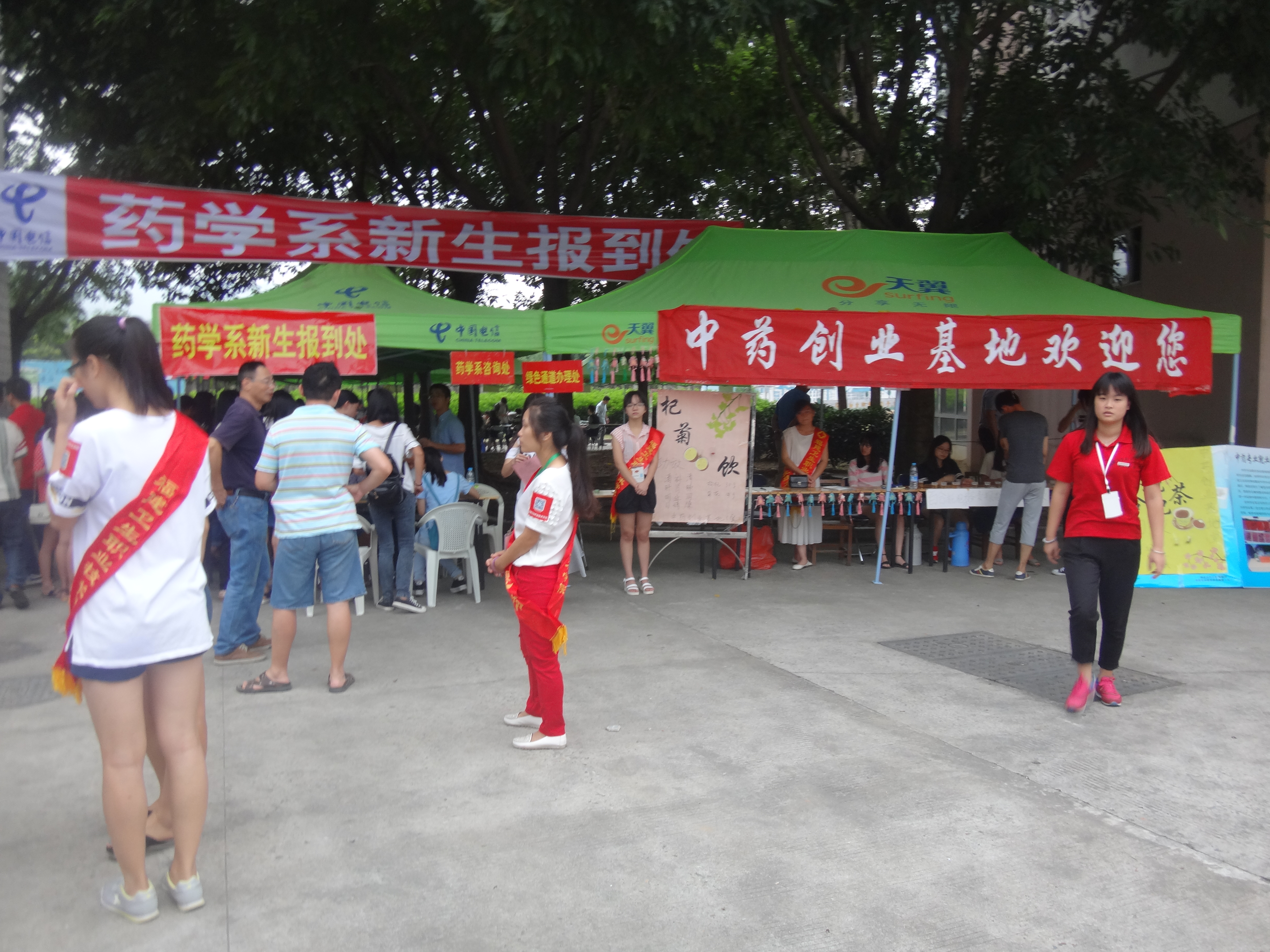 秋高氣爽,風(fēng)清云淡。藥學(xué)系迎來(lái)了2015級(jí)的莘莘學(xué)子,整個(gè)校園都沉浸在忙碌和喜悅當(dāng)中,新鮮的面孔為學(xué)院增添新的氣息,成為了校園里最靚麗的風(fēng)景線。迎新當(dāng)天,系部迎新共安排了240名志愿者分配在校門口、報(bào)到處、咨詢處、銀行刷卡處等,為新生提供全面的服務(wù)。系部領(lǐng)導(dǎo)親臨報(bào)到現(xiàn)場(chǎng),實(shí)時(shí)了解學(xué)生報(bào)到情況,與學(xué)生、家長(zhǎng)進(jìn)行溝通與交流,為學(xué)生解決各方面的問(wèn)題。為了配合本次的迎新工作,我系中藥創(chuàng)業(yè)基地還發(fā)揮了專業(yè)特色,為這次的迎新工作提供了中草藥茶飲,分別有杞菊飲,參麥銀花茶,百合枇杷茶。潤(rùn)肺止咳,清熱解毒,受到了廣大學(xué)生老師家長(zhǎng)的歡迎。最后,在全體參加迎新工作的老師和同學(xué)們的努力下,迎新工作終于落下帷幕,藥學(xué)專業(yè)報(bào)到率高達(dá)94.3%,中藥專業(yè)報(bào)到率達(dá)到86.7%,我系共迎來(lái)了579名新生。新學(xué)期、新面孔,新起點(diǎn),我們相信2015級(jí)新生會(huì)用他們的激情繪寫藥學(xué)系更加波瀾壯闊的明天。
