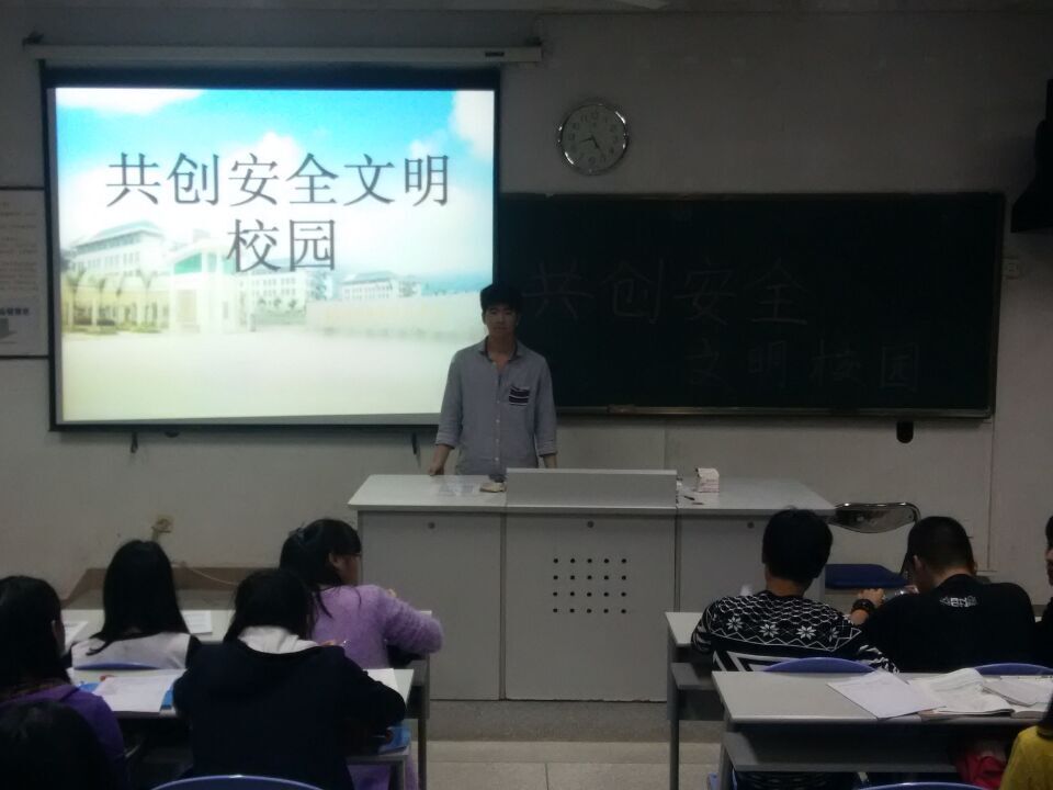 同時,針對系部安全的薄弱環(huán)節(jié),結合“我安全、我健康、我快樂”主題,在全體師生中深入開展了安全教育活動:各班召開一次安全教育主題班會,組織全體師生觀看安全教育片,14級新生舉行《共創(chuàng)安全文明校園倡議書》簽字儀式、系學生會宣傳部出一期安全教育??蟆⒏靼嗉壗M織向?qū)W生發(fā)送一條安全知識短信、系部安全領導小組對系部大樓和學生宿舍進行安全大排查等系列活動。
