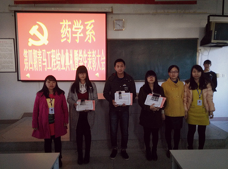 2014年12月30日下午,藥學(xué)系團(tuán)總支于藥學(xué)系部二階舉辦藥學(xué)系第四期“青馬工程”結(jié)業(yè)典禮暨學(xué)生表彰大會(huì)。蒞臨本次大會(huì)的領(lǐng)導(dǎo)老師分別有,藥學(xué)系黨總支林穎峰副書記,藥學(xué)系團(tuán)總支書記林麗鳳老師,系團(tuán)總支副書記李寶珠老師,系輔導(dǎo)員胡丹老師,以及黃嵩梅老師。此次大會(huì)由郭杭英同學(xué)主持。