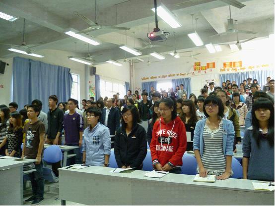 最后,全體起立在國際歌中開班典禮圓滿結(jié)束。