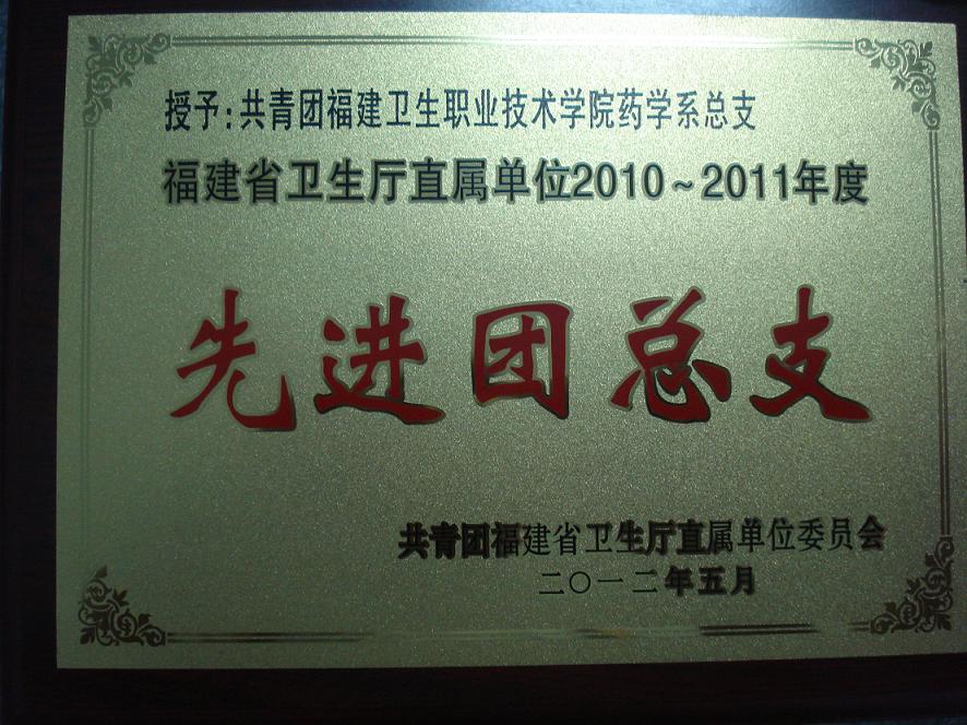 日前,共青團(tuán)福建省衛(wèi)生廳直屬單位委員會授予福建衛(wèi)生職業(yè)技術(shù)學(xué)院藥學(xué)系團(tuán)總支福建省衛(wèi)生廳直單位2010~2011年度“先進(jìn)團(tuán)總支”榮譽(yù)稱號。