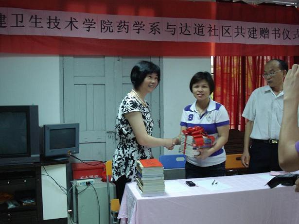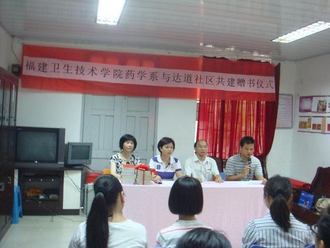 會上,首先由系黨總支蘇愛華副書記致辭,隨后,林小蘭書記與張秀斌主任分別代表學(xué)院和社區(qū)進(jìn)行贈書及揭牌儀式。此次我系共向達(dá)道社區(qū)捐贈圖書900多冊及捐書款600多元,此次共建活動也拉開了我系團(tuán)總支暑期“三下鄉(xiāng)”社會實(shí)踐活動的序幕,充分體現(xiàn)我系黨建帶團(tuán)建工作的顯著效果,福州新聞網(wǎng)等媒體到現(xiàn)場進(jìn)行報(bào)道。