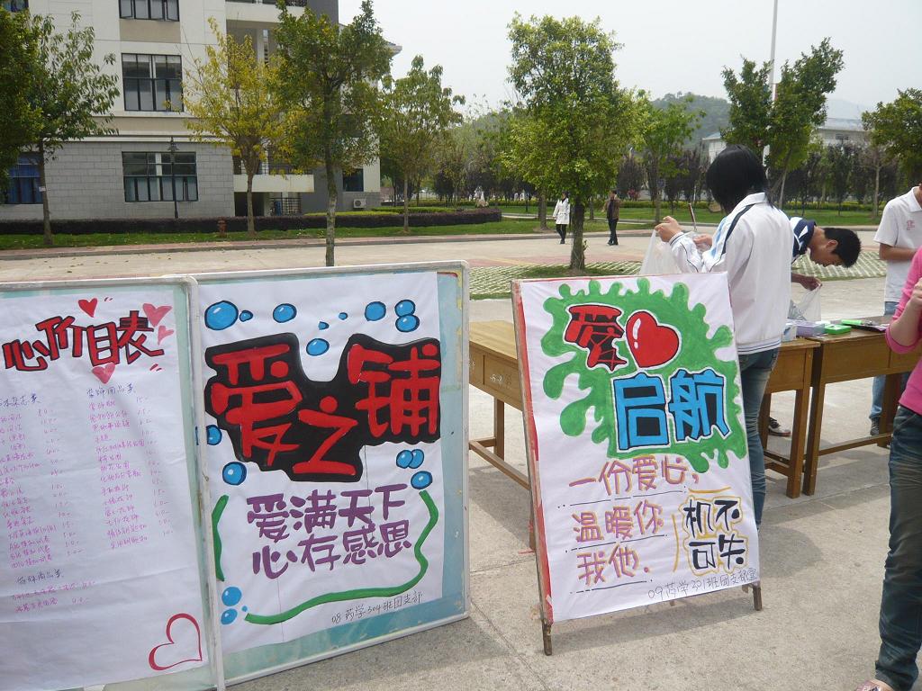 弘揚“一方有難,八方支援”的美德,培養(yǎng)學(xué)生樂于奉獻(xiàn)的品質(zhì)。在藥學(xué)系第一黨支部、系團總支、學(xué)生會的精心組織和倡議下,于2010年4月28日在校第一餐廳前舉辦了以“心系特困生,愛心促和諧”為主題的慈善義賣會活動。