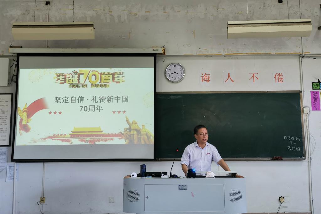 為慶祝新中國成立70周年,進一步增強青少年的獲得感、幸福感、安全感,凝聚和激發(fā)同學(xué)們的愛國熱情,2019年9月6日,陳貞健副院長于藥二階以“堅定信念,禮贊中國70周年”為主題,為藥學(xué)系 2018級學(xué)子講授了一堂生動而精彩的形勢與政策課。