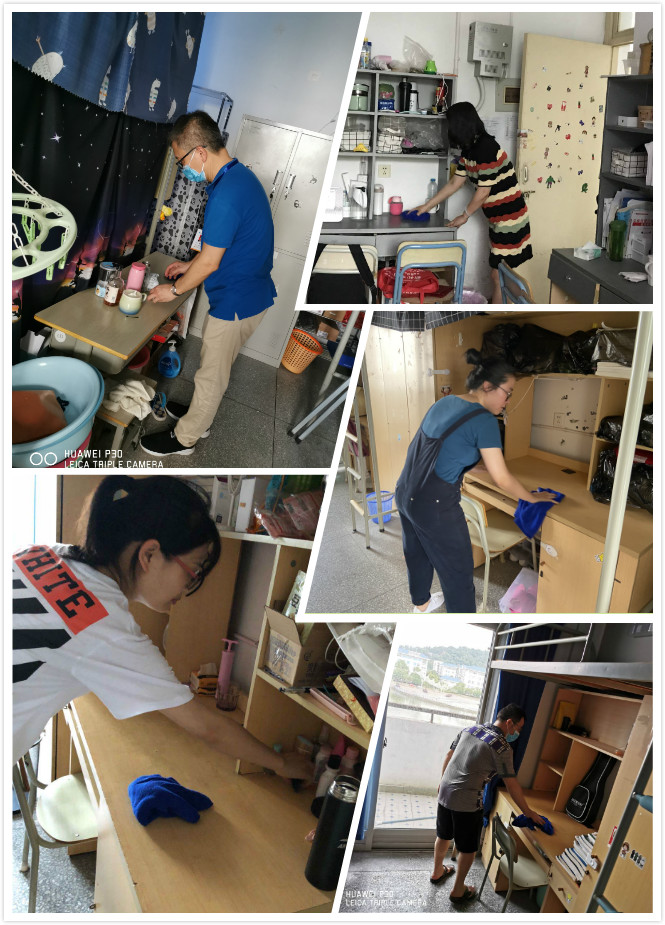 “老師,我的被子發(fā)霉了吧?”“老師,我的宿舍長草了吧?”你們的惦念與擔心,記在了藥學系老師的心中。6月4日下午,藥學系全體教職工齊出動,每人一間、幾人一套,左手拖把、右手抹布,進宿舍,做衛(wèi)生。