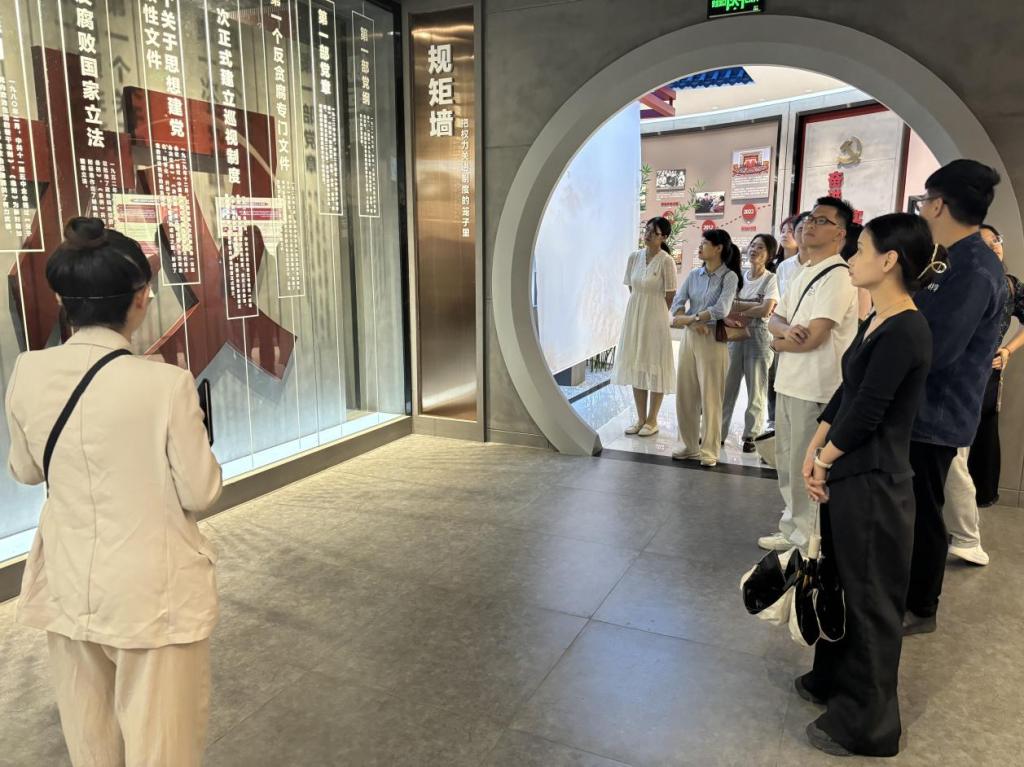 師生黨員們跟隨講解員實(shí)地參觀了序廳、思想廳、案例廳、成果廳,探尋中國共產(chǎn)黨紀(jì)律建設(shè)的偉大足跡,了解近年來反腐倡廉工作成效。接觸“酒桌”后卷入腐敗旋渦、觸碰“贓款”后響起警報(bào)被關(guān)進(jìn)“牢籠”、貪污事實(shí)暴露落網(wǎng)后寫下的“懺悔書”……現(xiàn)場教學(xué)活動中的鮮活案例和場景模擬互動體驗(yàn),既是一次警示教育,又是一次黨性教育。