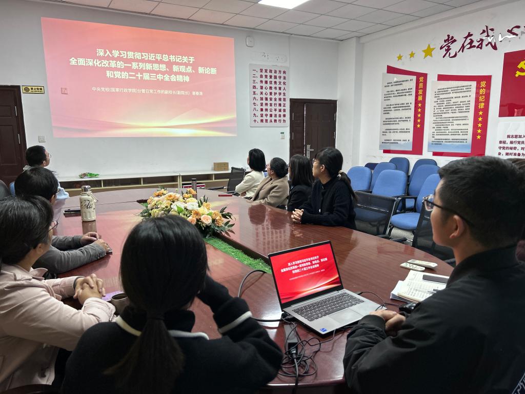 為深入學(xué)習(xí)貫徹黨的二十屆三中全會(huì)精神,提升黨員的黨性修養(yǎng)和思想覺悟,藥學(xué)院第二黨支部于12月5日下午在藥學(xué)院會(huì)議室開展“深入學(xué)習(xí)貫徹黨的二十屆三中全會(huì)精神專題輔導(dǎo)系列課程”集中學(xué)習(xí)活動(dòng)。此次活動(dòng)由黨支部書記劉丹丹主持,全體教師黨員參加會(huì)議。