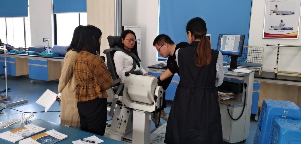 培訓(xùn)會上老師們認(rèn)真聽講,并提出了相關(guān)問題,技術(shù)工程師一一做了回答。此次培訓(xùn)對“多關(guān)節(jié)等速力量測試訓(xùn)練系統(tǒng)”、“脊柱功能測試訓(xùn)練系統(tǒng)”在康復(fù)相關(guān)實踐教學(xué)中的應(yīng)用進行專業(yè)的引領(lǐng),也為各種肢體功能障礙的康復(fù)科研活動的開展提供了設(shè)備保障。