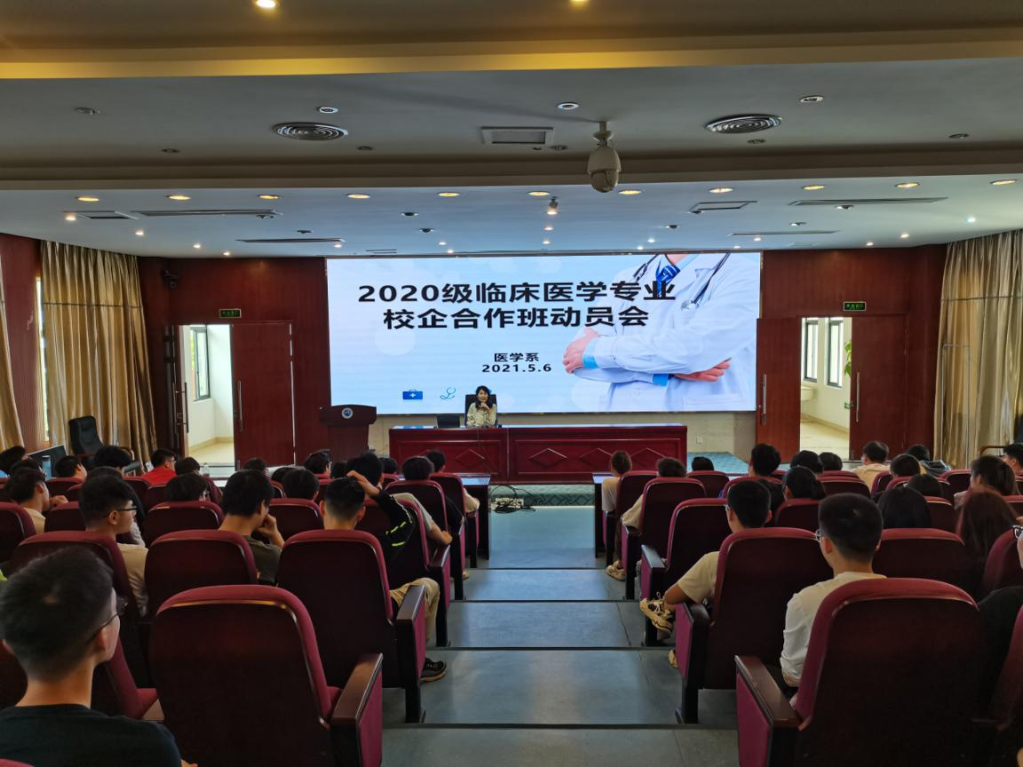 2021年5月6日,醫(yī)學(xué)系在實訓(xùn)樓報告廳舉辦2020級臨床醫(yī)學(xué)專業(yè)校企合作班的動員會。醫(yī)學(xué)系黨總支書記邱滾忠、臨床醫(yī)學(xué)專業(yè)帶頭人王芳、相關(guān)輔導(dǎo)員及校企合作班學(xué)生參加了動員會。