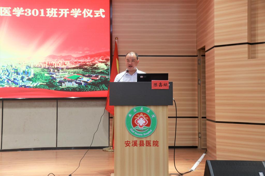 我院許能鋒院長對2019級臨床醫(yī)學301班在安溪縣醫(yī)院正式開班表示祝賀,希望同學們要加強醫(yī)學知識的學習,奠定良好的文化素質和專業(yè)技能,同時不忘提升自己的職業(yè)素養(yǎng),培養(yǎng)自己的責任心和使命感。要求同學們不忘初心、努力奮斗,為健康中國共同努力,實現(xiàn)夢想,鑄就輝煌的未來。