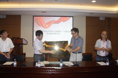 9月7日上午,福建衛(wèi)生職業(yè)技術(shù)學(xué)院、寧德市醫(yī)院2014級(jí)臨床醫(yī)學(xué)(定向基層醫(yī)療機(jī)構(gòu))專業(yè)校企合作班開班暨授牌儀式在寧德市醫(yī)院新區(qū)舉行。寧德市醫(yī)院陳子春院長(zhǎng)、焦維克副院長(zhǎng)、寧德市醫(yī)院腎內(nèi)科副主任李大勇醫(yī)師,教學(xué)班副主任胡廷輝醫(yī)師、教學(xué)班干事朱晶晶老師和我院廖偉堅(jiān)副院長(zhǎng)、教務(wù)處梁艷老師、臨床醫(yī)學(xué)系邱滾忠書記、主任助理林浩老師、輔導(dǎo)員吳涵梅老師以及臨床定向班51位同學(xué)出席了開班儀式,開班儀式由寧德市醫(yī)院副院長(zhǎng)焦維克主持。