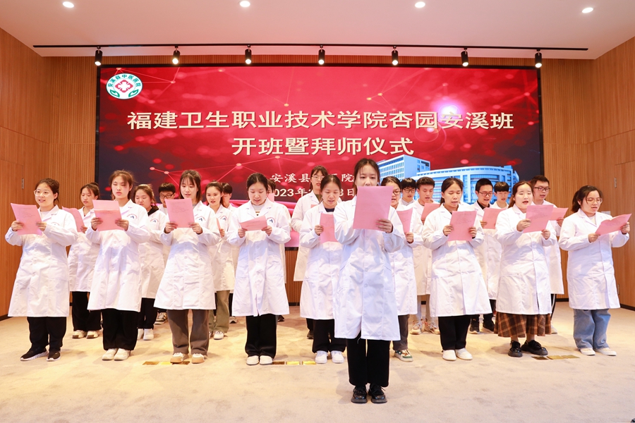 福建衛(wèi)生職業(yè)技術(shù)學(xué)院校長許能鋒、醫(yī)學(xué)院黨總支書記邱滾忠、教務(wù)處副處長李淼淼、實習(xí)實訓(xùn)中心副主任梁艷、醫(yī)學(xué)院副院長陳銘,安溪縣衛(wèi)生健康局副局長鄭貴陽,安溪縣中醫(yī)院院長李朝暉、黨委書記黃海松及其他領(lǐng)導(dǎo)班子成員,縣中醫(yī)院各職能科室與臨床科室負責(zé)人,杏園安溪班指導(dǎo)老師及所有學(xué)員參加本次活動。