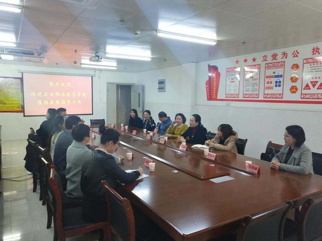 1月7日上午,三明醫(yī)學科技職業(yè)學院賴煥標副校長會見我校一行并陪同參觀校園,結合專業(yè)實地考察了該校的實訓中心、基礎醫(yī)學實驗中心等。隨后召開座談會,就學校教育教學管理、專業(yè)建設、師資隊伍建設、學生管理等情況開展座談。下午我校一行來到沙縣總醫(yī)院,醫(yī)院黨委書記萬小英與謝顯金院長介紹了目前臨床醫(yī)學專業(yè)1+1+1教學模式的實施方法,實施內(nèi)容和初步成效。