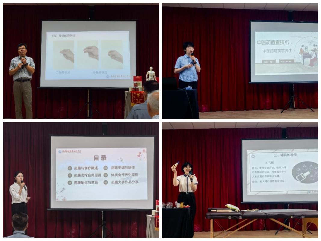 之后,主辦雙方開展七場(chǎng)“中醫(yī)藥適宜技術(shù)系列講座”。福建衛(wèi)生職業(yè)技術(shù)學(xué)院教師主講了《針灸技術(shù)》《艾灸技術(shù)》《拔罐技術(shù)》《刮痧技術(shù)》《中醫(yī)藥與美容養(yǎng)生》《藥膳與食療》和《膝關(guān)節(jié)康復(fù)功法》等講座,講座圍繞針灸、艾灸、拔罐、刮痧、中醫(yī)美容養(yǎng)生等傳統(tǒng)技藝,并融入藥膳食療、全身肢體康復(fù)功法等生活化養(yǎng)生內(nèi)容,吸引大批當(dāng)?shù)孛癖娂爸嗅t(yī)從業(yè)者踴躍參與,現(xiàn)場(chǎng)互動(dòng)熱烈,反響積極,充分展現(xiàn)了中醫(yī)藥文化的獨(dú)特魅力與實(shí)用價(jià)值。