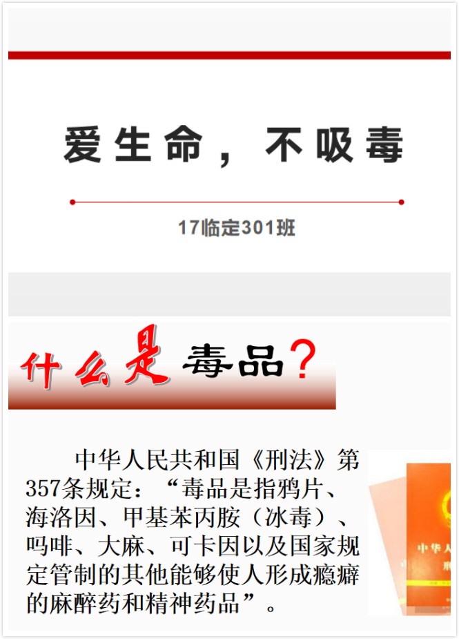 輔導員們通過ppt、視頻、word材料等介紹毒品的種類、相關(guān)毒品的圖片以及毒品對個人、家庭、社會的危害進行宣傳教育,同時結(jié)合吸毒相關(guān)案例予以警示。讓學生直觀認識毒品,學習毒品的危害,增強自制力,形成遠離毒品的意識,充分學習“珍愛生命,拒絕毒品”的會議精神。強調(diào)能做到“在毒品面前做到不沾染,并積極對自己身邊的人進行宣傳普及。”