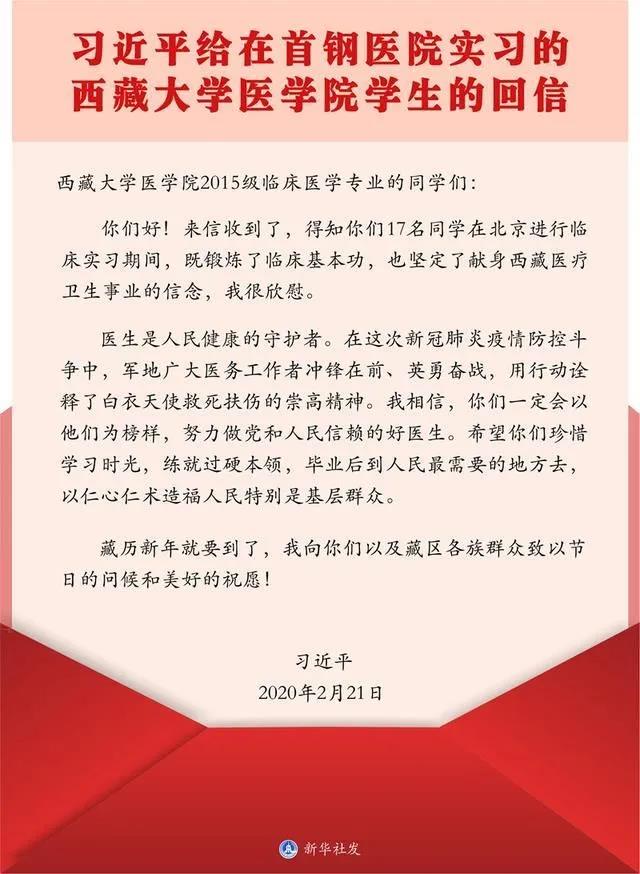 2月21日,習(xí)近平總書記給正在北京大學(xué)首鋼醫(yī)院實(shí)習(xí)的西藏大學(xué)醫(yī)學(xué)院學(xué)生回信,肯定他們獻(xiàn)身西藏醫(yī)療衛(wèi)生事業(yè)的志向,勉勵(lì)他們練就過硬本領(lǐng)、服務(wù)基層人民,并向他們以及藏區(qū)各族群眾致以節(jié)日的問候和美好的祝愿。隨后引起我系師生的熱議,2月24日上午,在我系團(tuán)總支書記陳清清、副書記謝林輝主持下,組織開展了線上學(xué)習(xí)會議,18級團(tuán)學(xué)干部、17級實(shí)習(xí)生代表共同參加了學(xué)習(xí);25日晚上,我系團(tuán)總支組織各團(tuán)支部召開線上主題團(tuán)日活動(dòng)。
