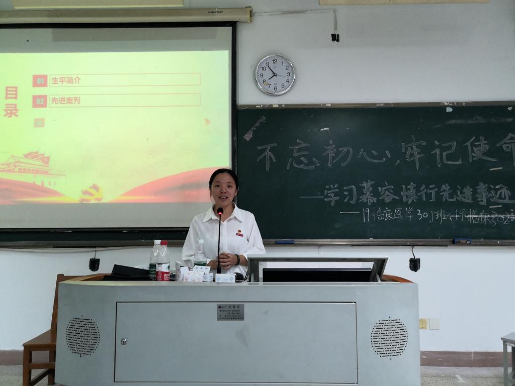 團日活動中,各班輔導員通過PPT介紹了慕容慎行同志生平,以實際案例展現(xiàn)了他以“急病人之所急,痛病人之所痛,視病人如親人”的行醫(yī)理念,體現(xiàn)了新時期人民醫(yī)生、人民教師的崇高品格和精神風貌,體現(xiàn)了優(yōu)秀共產(chǎn)黨員的光輝形象。同時,通過觀看在我校舉行的慕容慎行同志先進報告會視頻,展開各團支部團員交流。