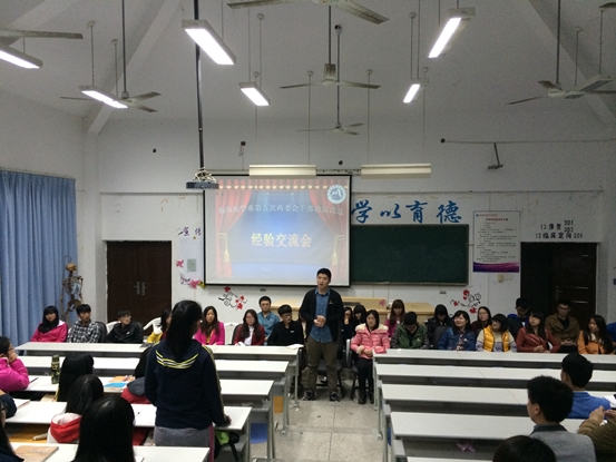 此次經(jīng)驗(yàn)交流會(huì)通過(guò)各部門部長(zhǎng)的經(jīng)驗(yàn)交流以及互動(dòng)提問(wèn),讓新生了解兩委會(huì)的構(gòu)成及各部門的分工和具體職責(zé),讓他們?cè)谶x擇競(jìng)選職位的時(shí)候更有目的性。