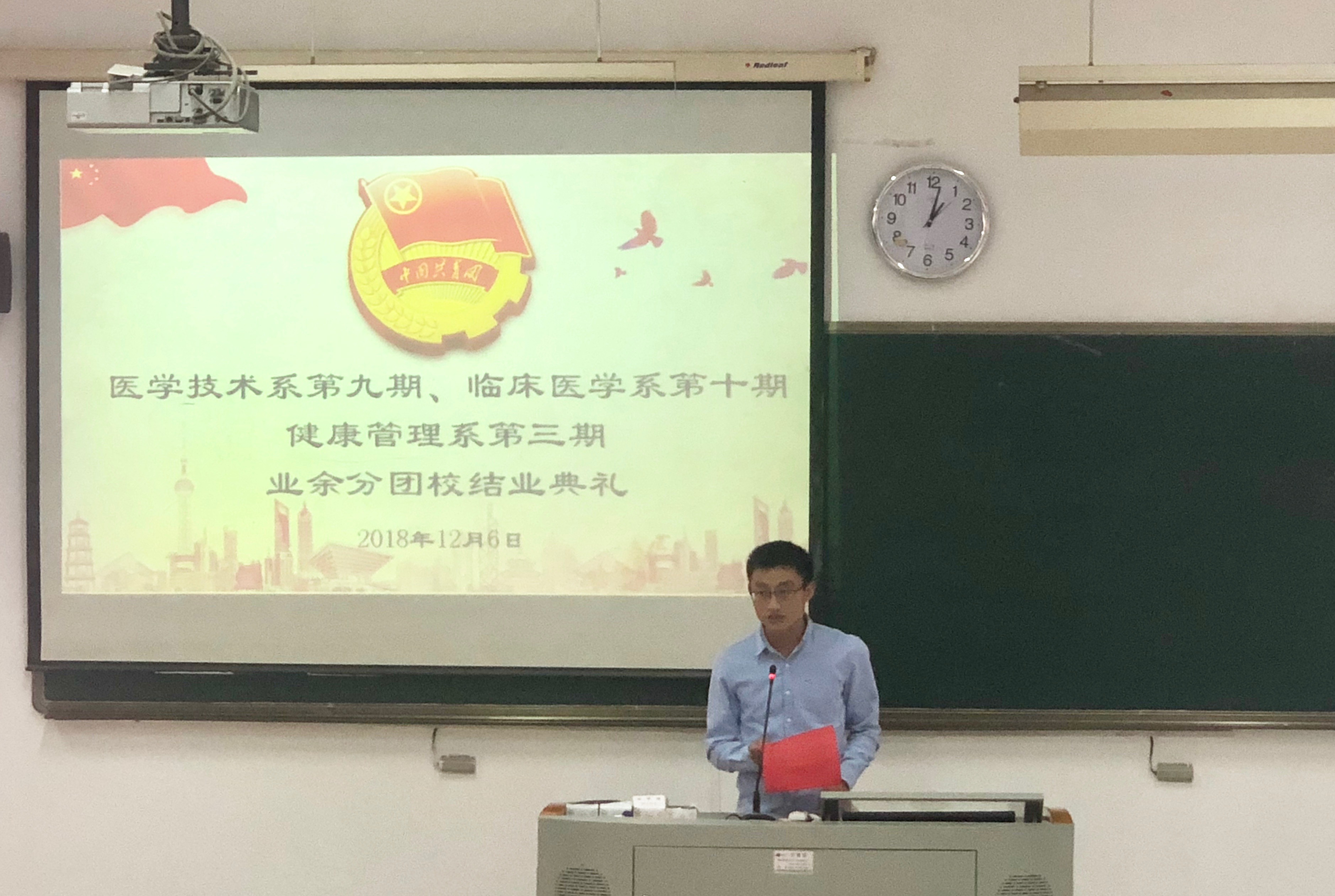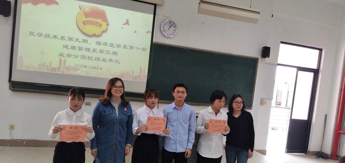 12月6日,臨床醫(yī)學系第十期、醫(yī)學技術系第九期、健康管理系第三期業(yè)余分團校結業(yè)典禮在教學樓210教室。臨床醫(yī)學系團總支謝林輝副書記;醫(yī)學技術系團總支黃玲云書記、輔導員陳念文老師;健康管理系團總支邱麟書記、輔導員趙茜老師出席此次團校結業(yè)典禮。
