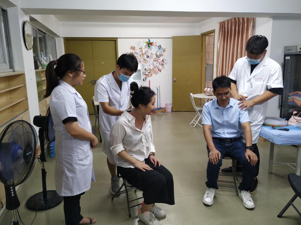 康樂(lè)工作室負(fù)責(zé)人首先介紹了工作室的發(fā)展歷程和主要經(jīng)營(yíng)項(xiàng)目,為了讓專家們更直觀的感受到工作室的經(jīng)營(yíng)項(xiàng)目及運(yùn)營(yíng)模式,工作室的成員們開始運(yùn)用自己所學(xué)的專業(yè)技能,為專家們進(jìn)行了肩頸按摩和拔罐。經(jīng)過(guò)參觀考察、親身體驗(yàn)一系列活動(dòng),工作室成員們受到了專家們的一致好評(píng)。
