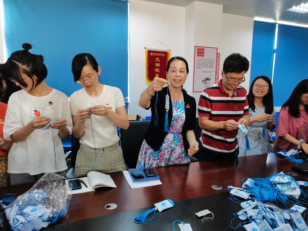 活動(dòng)中,支部全體師生分工合作,有條不紊,制作了數(shù)百個(gè)具有“芳香辟穢、祛邪解毒”防疫效用藥囊,會(huì)議室彌漫著清新怡人的中藥香。