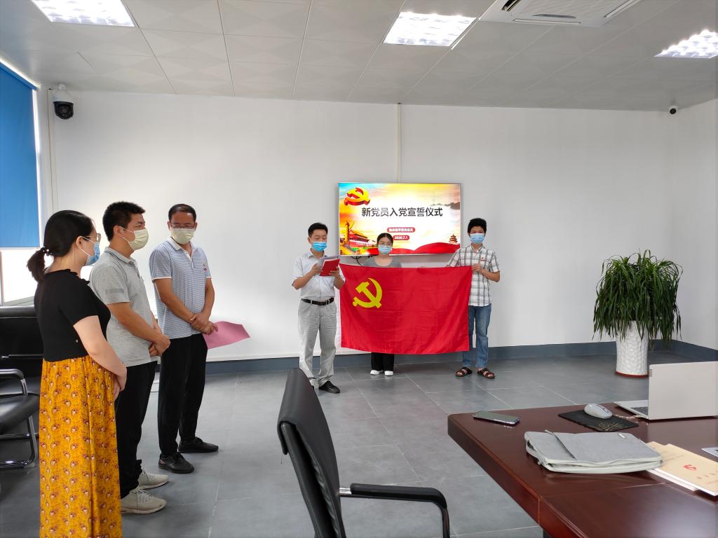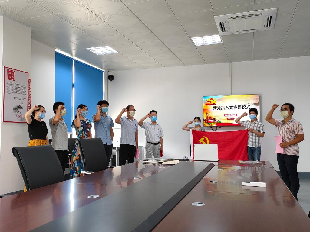本次儀式由葉家濤主持,在莊嚴(yán)的《國際歌》中活動拉開帷幕。葉家濤宣讀新黨員名單并帶領(lǐng)他們在黨旗前莊嚴(yán)宣誓,表達(dá)了為黨的事業(yè)奮斗終身的決心,參加活動的老黨員也重溫了入黨誓詞。新黨員代表張藝婷同學(xué)發(fā)言,表示會永遠(yuǎn)記住向黨和人民許下的鄭重承諾。老黨員代表朱翔書記分享自身感受并希望大家在疫情的特殊時(shí)刻也能成長起來,成為優(yōu)秀的黨員。黨總支副書記郭禮堅(jiān)致辭,希望所有新黨員們不僅要在思想上、行為上入黨,更要牢記黨的宗旨,履行黨員義務(wù),在學(xué)思踐悟中堅(jiān)定理想信念在奮發(fā)有為中踐行初心使命。