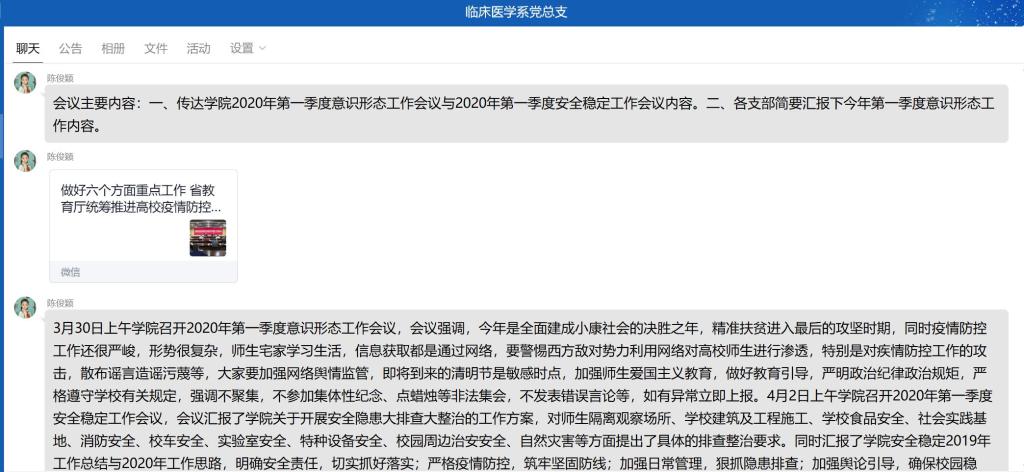 4月2日,臨床醫(yī)學(xué)系2020年第一季度意識形態(tài)及安全工作會議,同時4月份的黨支部書記例會于線上召開。系黨總支委員及支部書記參加會議,會議由黨總支負責人陳俊穎主持。