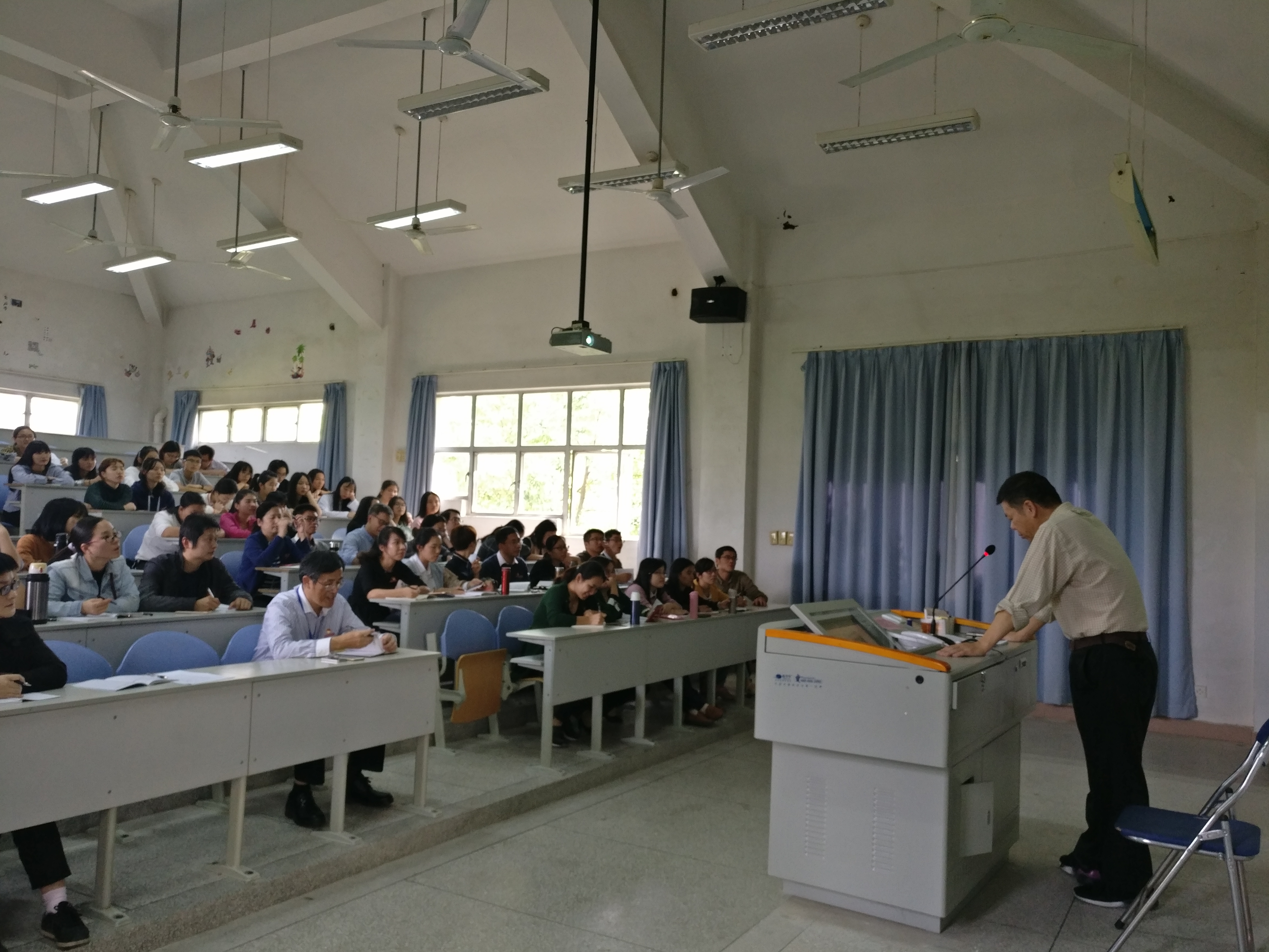 2017 年11月16日下午, 院黨委林建團(tuán)副書記為醫(yī)基臨床黨總支全體黨員和部分學(xué)生入黨積極分子作題為“高舉習(xí)近平新時代中國特色社會主義思想偉大旗幟”的專題黨課,黨課由洪聿榮書記主持。