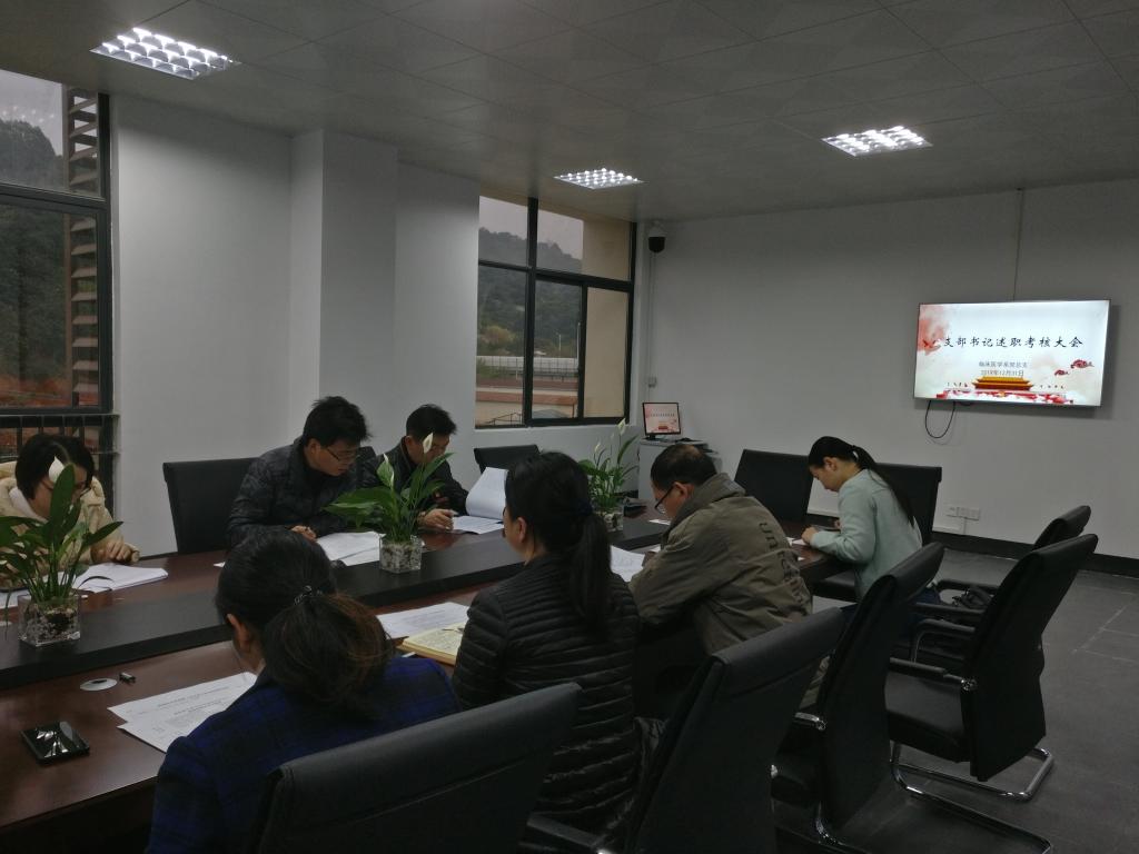 為深入貫徹落實(shí)全面從嚴(yán)治黨要求,加強(qiáng)對(duì)基層黨組織建設(shè)工作考核,提高黨支部建設(shè)質(zhì)量,12月31日下午,臨床醫(yī)學(xué)系黨總支在實(shí)訓(xùn)樓310會(huì)議室召開(kāi)2019年度黨支部書(shū)記述職評(píng)議考核會(huì)議,總支委員、各黨支部書(shū)記參加會(huì)議。會(huì)議由黨總支負(fù)責(zé)人陳俊穎主持。