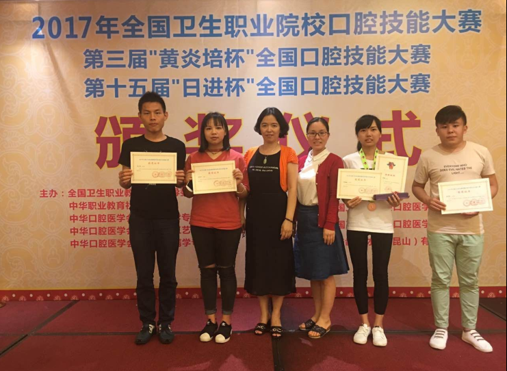 我院臨床醫(yī)學(xué)系派出的2015級口腔醫(yī)學(xué)專業(yè)的4名選手參加牙體制備組、雕牙和排牙組的比賽,獲得了可喜的成績。黃珊珊同學(xué)榮獲牙體制備組一等獎,吳采玲同學(xué)榮獲牙體制備組三等獎;黃珊珊同學(xué)榮獲窩洞制備單項(xiàng)獎三等獎。鄭少東、李亞廷同學(xué)均榮獲雕牙和排牙組三等獎。