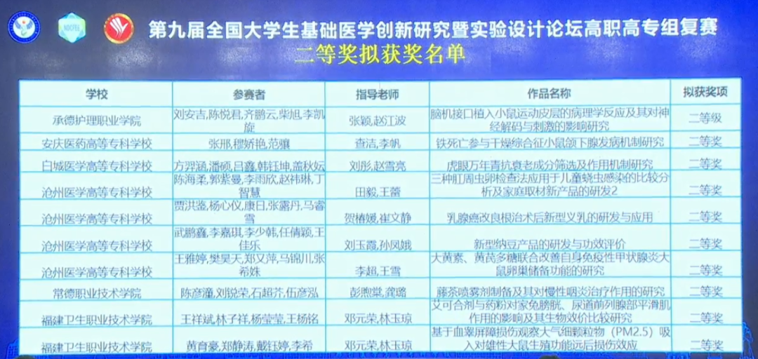 比賽采用線上線下混合式答辯的方式開展,經過激烈角逐,我校教師鄧元榮、林玉瓊指導22級臨床(高本貫通)602班黃育豪、鄭靜濤、戴鈺婷、李希的作品《基于血睪屏障損傷觀察大氣細顆粒物(PM2.5)吸入對雄性大鼠生殖功能遠后損傷效應》和21級藥產301班王祥斌、林子祥、楊瑩瑩、王楊銘的作品《艾可合劑與粉劑對家兔膀胱、尿道前列腺部平滑肌作用的影響及其生物效價比較研究》均獲得二等獎,團隊將在今年8月的全國總決賽上向更高榮譽發(fā)起沖擊。