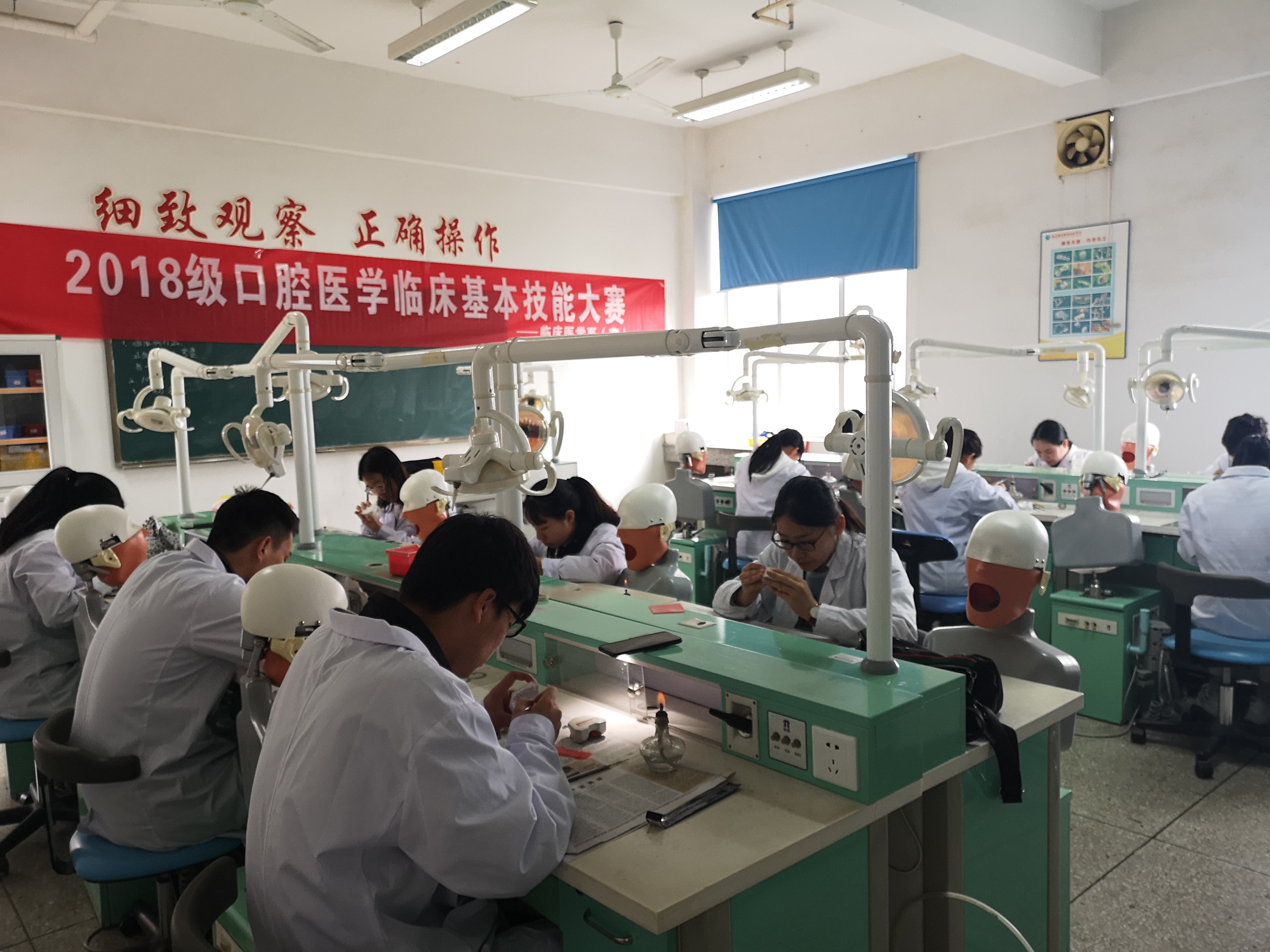 為增強(qiáng)同學(xué)們的動手能力、夯實自己的專業(yè)知識。臨床醫(yī)學(xué)系于4月11日至5月8日在醫(yī)學(xué)技術(shù)樓口腔實驗室舉行了口腔臨床基本大賽。本次大賽由馬清璇老師、朱淑倩老師主持,17、18級口腔醫(yī)學(xué)專業(yè)的學(xué)生參加本次比賽。