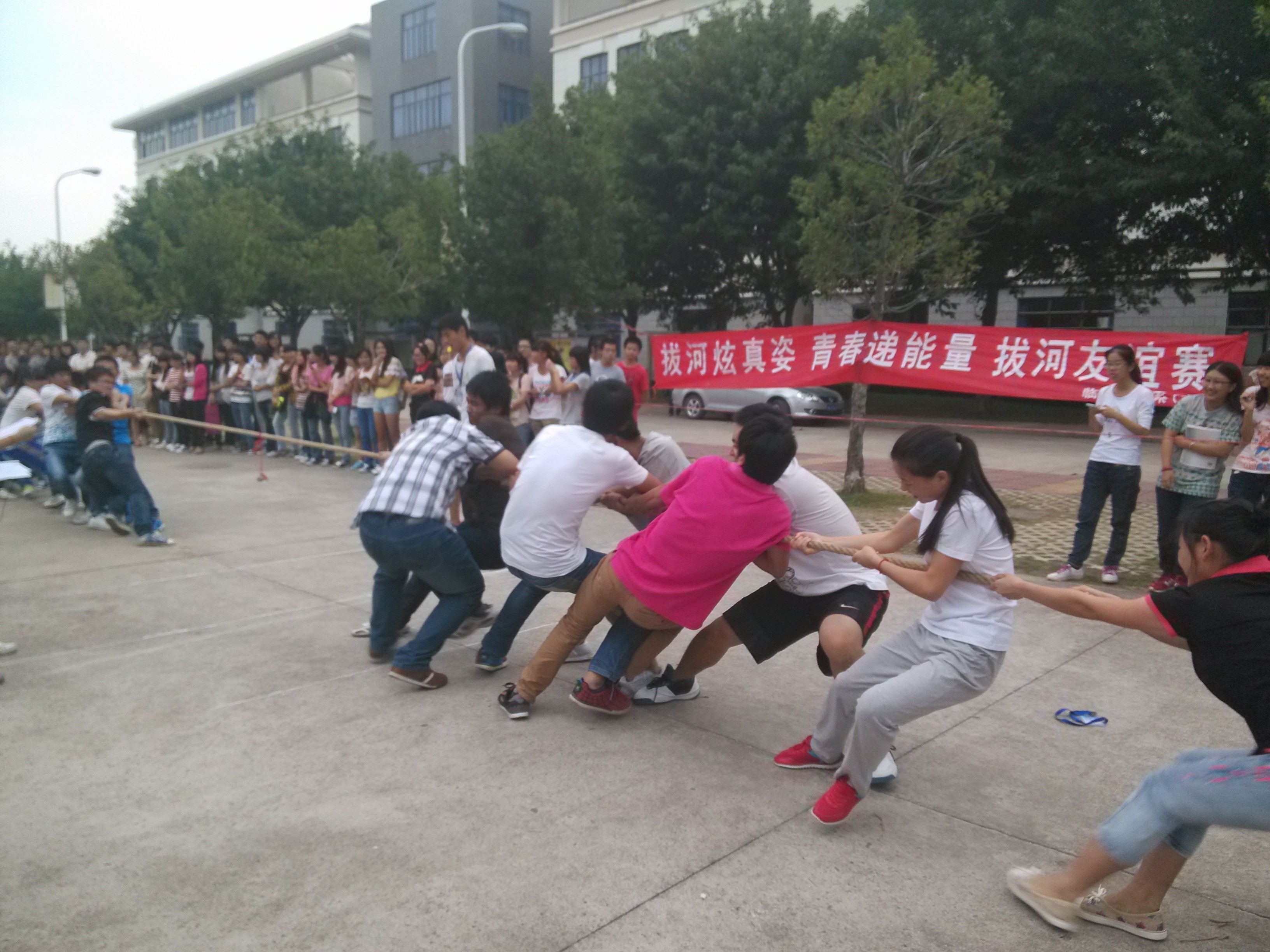 本次比賽以班級(jí)為單位,每班派出16名選手男女混搭,共有17支隊(duì)伍參加了比賽。下午16:40比賽正式開始, 現(xiàn)場氣氛異常高漲,雙方隊(duì)員緊緊抓牢手中的繩子,下腰勒繩,重心降低,腳抵腳,齊心協(xié)力往后拉,整個(gè)賽事跌宕起伏,扣人心弦,各隊(duì)的拉拉隊(duì)助威聲此起彼伏,給足了隊(duì)員們信心,隊(duì)員們咬緊牙關(guān),使勁全力,雖然臉憋得通紅,但還是堅(jiān)持著,絲毫不松手。
