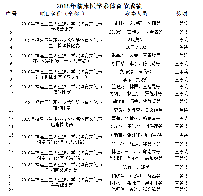 習近平總書記說:“只有進行了激情奮斗的青春,只有進行了頑強拼搏的青春,只有為人民作出了奉獻的青春,才會留下充實、溫暖、持久、無悔的青春回憶?!痹隗w育節(jié)和易班十佳班級中,臨床系學子們激情奮斗取得各項優(yōu)異成績,祝賀他們!