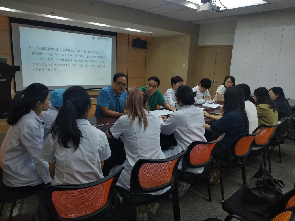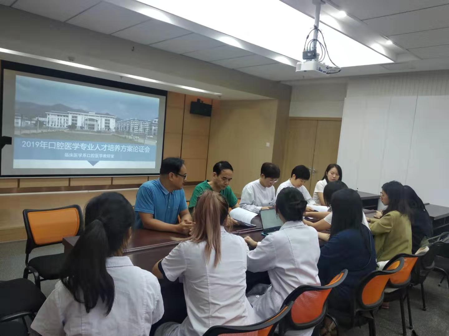 口腔醫(yī)學(xué)專業(yè)帶頭人馬清璇老師首先匯報(bào)了2019級(jí)口腔醫(yī)學(xué)專業(yè)人才培養(yǎng)方案制定情況及口腔醫(yī)學(xué)專業(yè)建設(shè)情況、招生情況??谇会t(yī)學(xué)專業(yè)指導(dǎo)委員會(huì)各位成員委員審議了新制定的口腔醫(yī)學(xué)專業(yè)人才方案,并著重討論了(1)口腔專業(yè)課程如何開展課程思政及融入點(diǎn);(2)口腔醫(yī)學(xué)專業(yè)核心課程設(shè)置;(3)2019級(jí)口腔醫(yī)學(xué)專業(yè)實(shí)習(xí)計(jì)劃。潘在興副院長指出根據(jù)《關(guān)于加強(qiáng)和改進(jìn)新形勢(shì)下高校思想政治工作的意見》精神,在人才培養(yǎng)方案制定中需體現(xiàn)全程育人和專業(yè)培養(yǎng)相融合。結(jié)合學(xué)生和專業(yè)實(shí)際,注重把愛國主義、民族情懷、社會(huì)主義核心價(jià)值觀、醫(yī)德醫(yī)風(fēng)等貫穿滲透到專業(yè)課程教學(xué)中,培育學(xué)生求真務(wù)實(shí)、吃苦耐勞、精益求精的優(yōu)秀品質(zhì);在專業(yè)建設(shè)上各位專業(yè)指導(dǎo)委員會(huì)成員一致認(rèn)為要依據(jù)教育部頒布的高等職業(yè)學(xué)??谇会t(yī)學(xué)專業(yè)教學(xué)標(biāo)準(zhǔn)開展,學(xué)生代表也紛紛為口腔專業(yè)人才培養(yǎng)方案的修訂發(fā)表自己的看法,會(huì)議取得了圓滿成功。