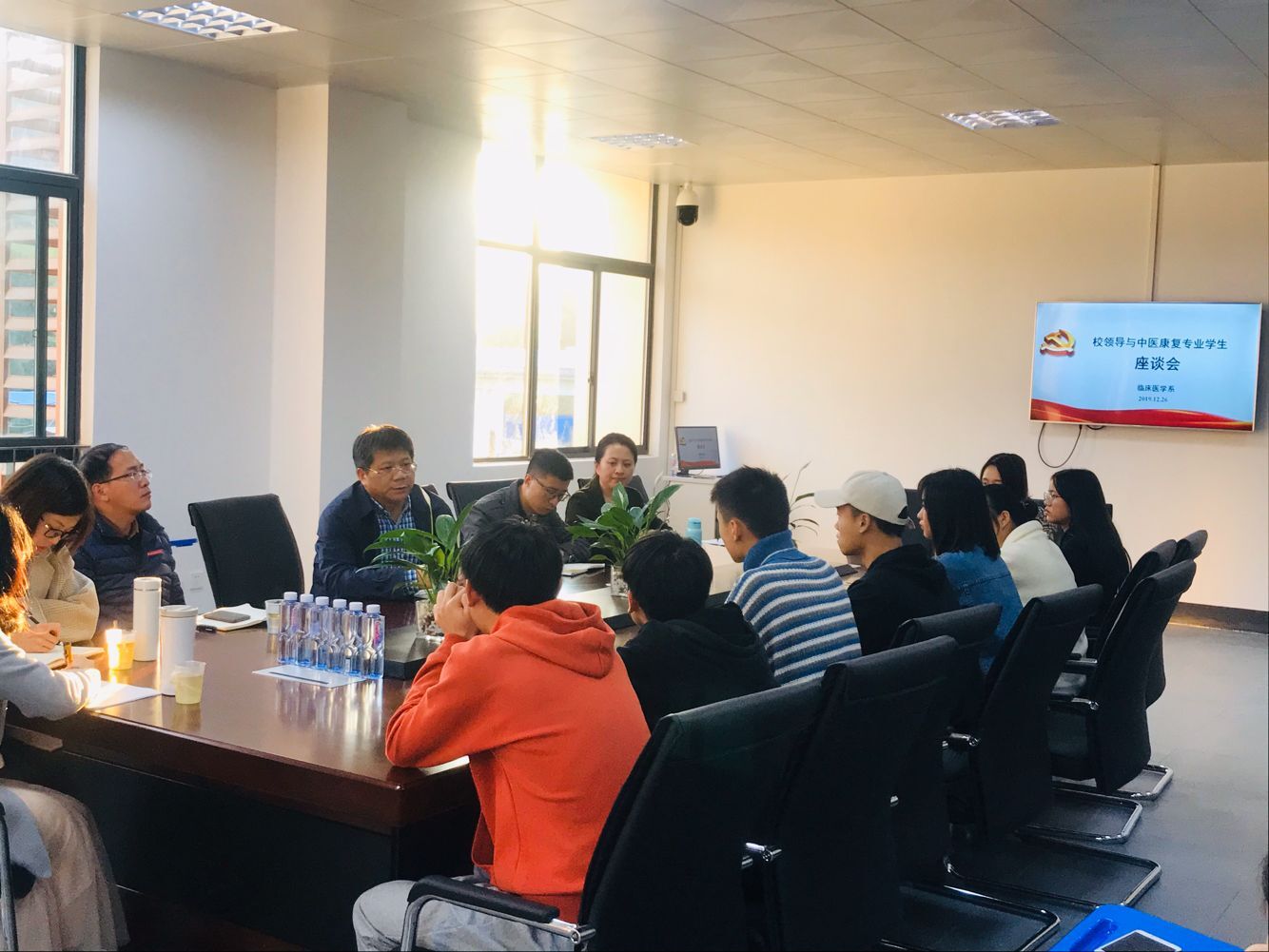 會(huì)議開始,陳俊穎副書記首先代表臨床醫(yī)學(xué)系首先表達(dá)了對校領(lǐng)導(dǎo)前來參會(huì)的感謝之情,并說明本次會(huì)議的目的是為了了解新設(shè)專業(yè)中醫(yī)康復(fù)技術(shù)專業(yè)學(xué)生的學(xué)習(xí)、生活等各方面情況并對學(xué)生進(jìn)行專業(yè)引導(dǎo)。