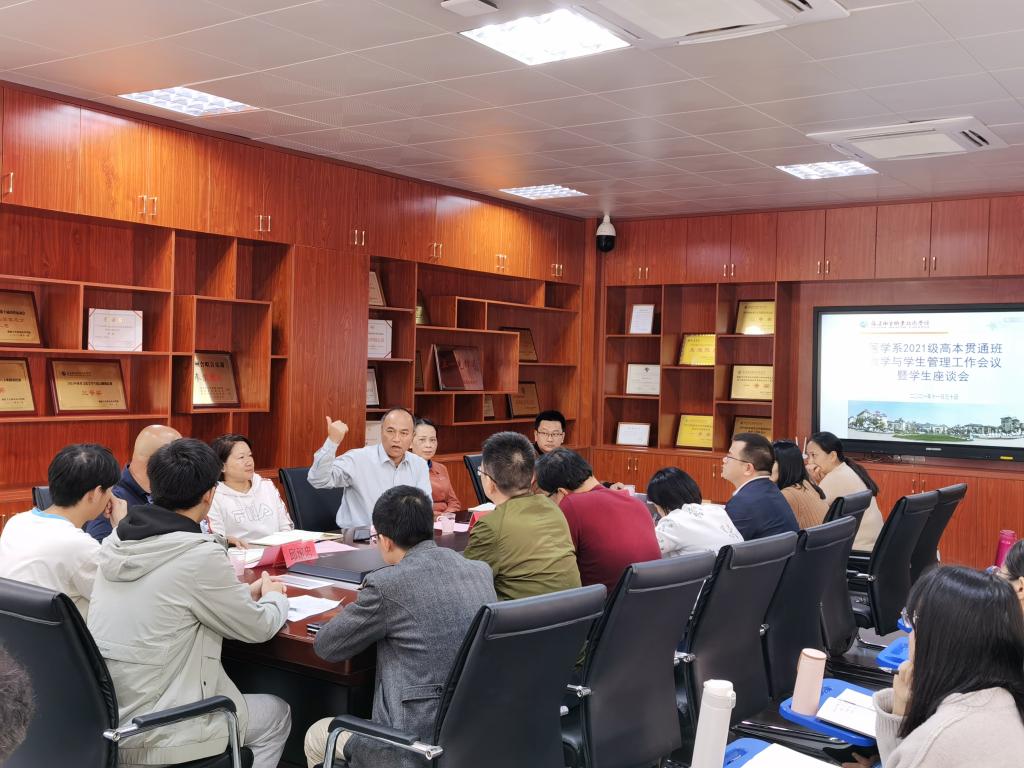 2021年11月30日,醫(yī)學(xué)系開展2021級(jí)高本貫通班教學(xué)與學(xué)生管理工作會(huì)議暨學(xué)生座談會(huì),校長許能鋒、副校長鄭翠紅,教務(wù)處、學(xué)生工作部負(fù)責(zé)人,黨政辦公室相關(guān)人員、醫(yī)學(xué)系黨政負(fù)責(zé)人、輔導(dǎo)員、醫(yī)學(xué)系及醫(yī)學(xué)基礎(chǔ)部12位班導(dǎo)師、學(xué)生代表參加座談會(huì)。
