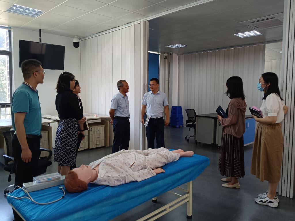 教務處負責人李淼淼提出,一要落實落細目前教學存在的問題,希望兩校通過交流協(xié)商,做好轉(zhuǎn)段考試工作;二要通過師資支援、集體備課、專業(yè)指導等方面的學習與磨合,不斷找準契合高本貫通臨床醫(yī)學專業(yè)學生的教學模式,切實提高教學水平與效果。劉豫瑞表示,一方面,要提升教學管理質(zhì)量,優(yōu)化人才培養(yǎng)方案,保障轉(zhuǎn)段考試工作,優(yōu)選實習實訓資源,鼓勵學生參與技能競賽,安排教師參與集體備課,協(xié)助培訓技能考核標準化病人(SP);另一方面,要聯(lián)合加強學生管理水平,重點在學生學習目標、人生規(guī)劃、心理壓力等方面下功夫,加強兩校學生間的互動交流,進一步增強學生的歸屬感。劉豫瑞一行還實地考察了臨床醫(yī)學專業(yè)實訓基地,重點了解轉(zhuǎn)段考試課程《診斷學》技能考核實訓條件。