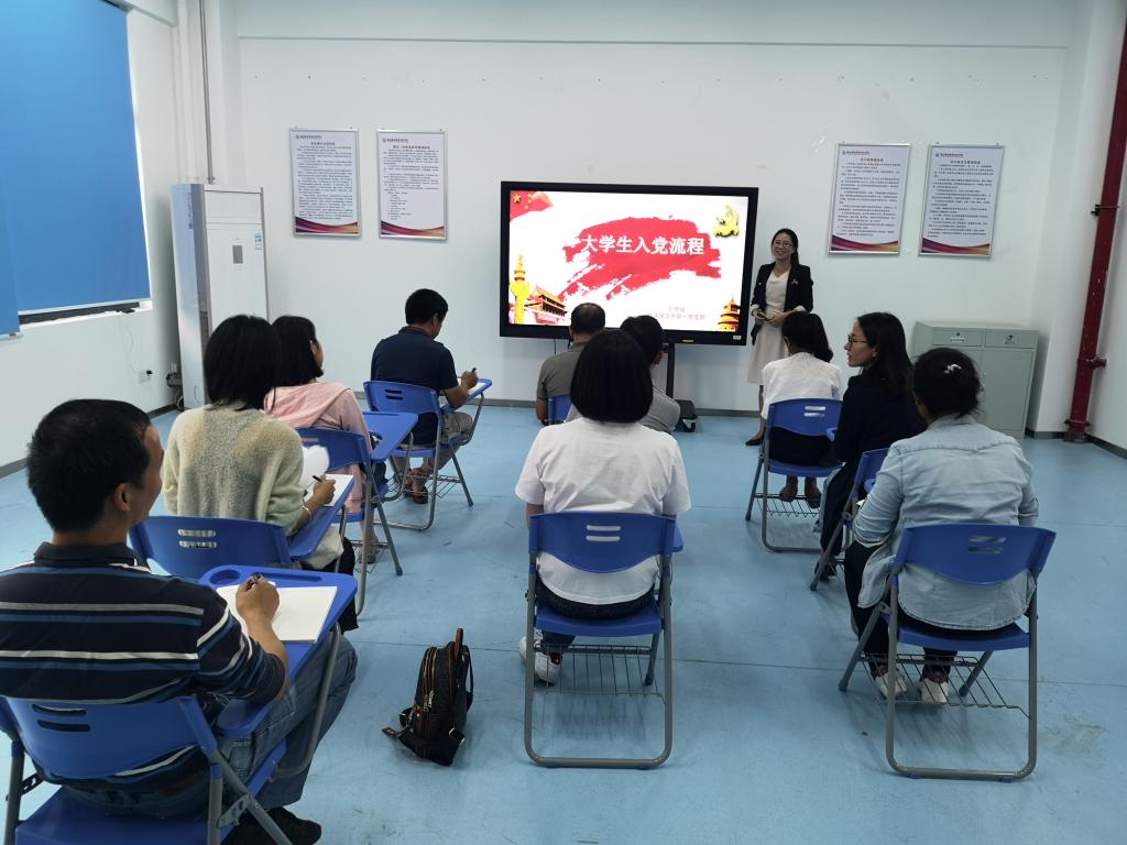 劉景城同志圍繞“遞交入黨志愿書”、“團組織推優(yōu)”、“確定入黨積極分子”、“入黨積極分子的培養(yǎng)與考察”、“確定發(fā)展對象”、“預備黨員的接收”、“預備黨員管理教育”、“預備黨員轉(zhuǎn)正”等這八個方面詳細介紹了大學生入黨的流程。課間,大家各抒己見,結(jié)合工作中遇到的難點和積累的經(jīng)驗相互做了交流。