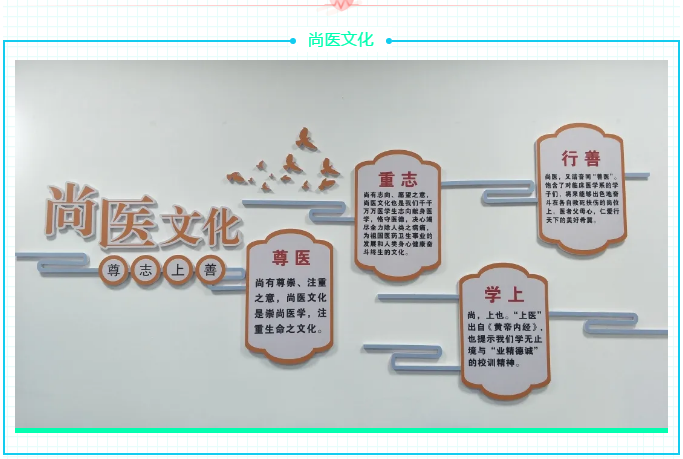 尊醫(yī):有尊崇、注重之意,尚醫(yī)文化是崇尚醫(yī)學,注重生命之文化。我系自創(chuàng)辦以來便立志于培養(yǎng)醫(yī)學生高尚的人文品質(zhì)。作為一名醫(yī)生應具備敬畏生命、尊重生命規(guī)律、懂得傾聽、尊重患者、善解人意、敢于冒險的品格,要有一顆仁愛之心和一雙溫暖的手。醫(yī)務工作者要在先進文化和崇高醫(yī)學人文精神的涵養(yǎng)下,正確認識醫(yī)學與人文的關系,樹立“以人為本、以德行醫(yī)、以醫(yī)行善”的觀念,進一步弘揚“崇尚敬業(yè),崇尚奉獻,崇尚服務,崇尚創(chuàng)新”的醫(yī)院精神。