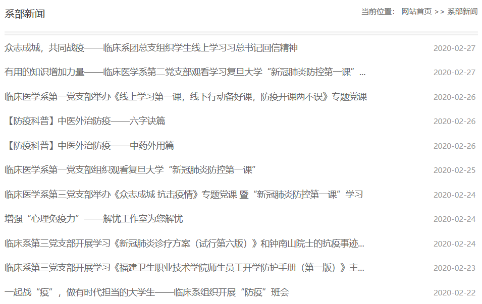 三、教務后勤組:1.繼續(xù)匯總本系教職工健康與動向;2.了解還在外地教職工情況,安排近日返福州;3.督促返福州的教職工居家隔離14天;4.督促教師收看《新冠肺炎防控第一課》;5.督促教師按校歷表按進度表合理有效的網(wǎng)上授課。