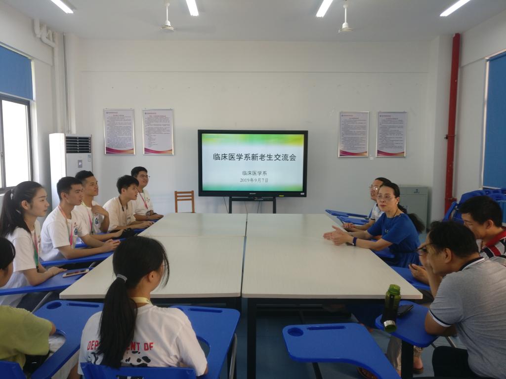 鄭翠紅副院長還專程到系部會議室與系部領導就系部建設中遇到的實際問題進行座談,并參加臨床醫(yī)學系新老生交流會。本次交流會成員囊括了17、18級以及19級新生,大家聚在一起互動交流。學姐學長細致講解了學習和工作中可能遇到的問題,提出了自己的觀點看法,并結合自身經(jīng)驗為剛步入大學的學弟學妹們提供了寶貴的經(jīng)驗。鄭翠紅副院長親切回憶起當年的在校時光,對在座新生提出了幾點期望,希望同學們能夠快速愉快地融入新的生活,樹立的集體觀念,與同學和睦相處,并在學習上鉆研技巧、多下苦功;也希望下點實習的同學努力學習專業(yè)技能,主動虛心向指導老師請教,在實踐操作中學會反思總結,爭取更上一層樓。