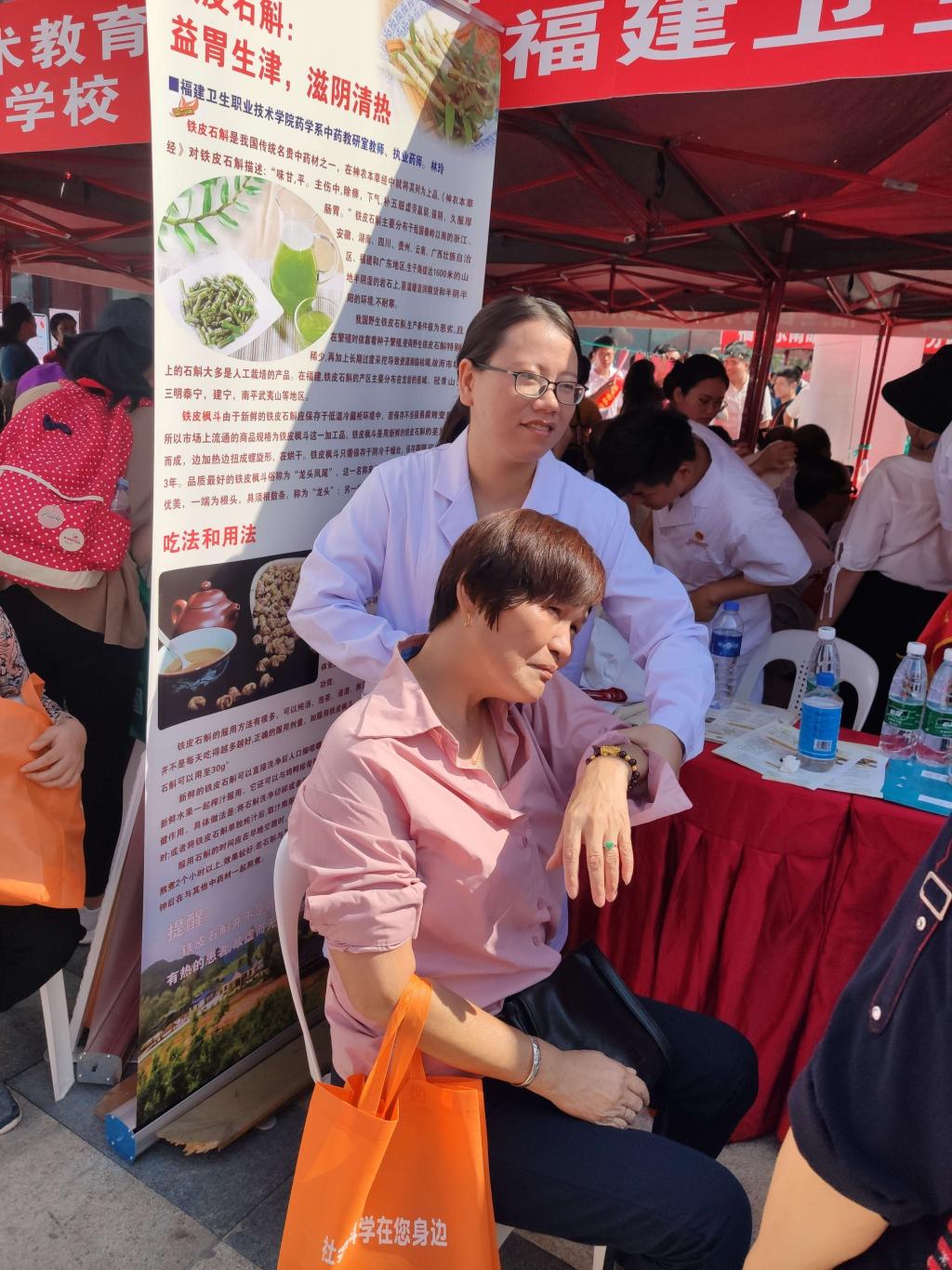 10月19日上午,臨床醫(yī)學(xué)系師生應(yīng)邀參加由福建省社會科學(xué)界聯(lián)合會舉辦的2019 年福建省社會科學(xué)普及宣傳周活動,旨在向廣大市民科普中醫(yī)、中藥文化,提高人們對中醫(yī)保健養(yǎng)生的認(rèn)識。本次活動由臨床醫(yī)學(xué)系林國威副主任、蔡唐彥老師、沈書泓老師以及臨床醫(yī)學(xué)系、藥學(xué)系、護(hù)理系志愿者同學(xué)共同參與。
