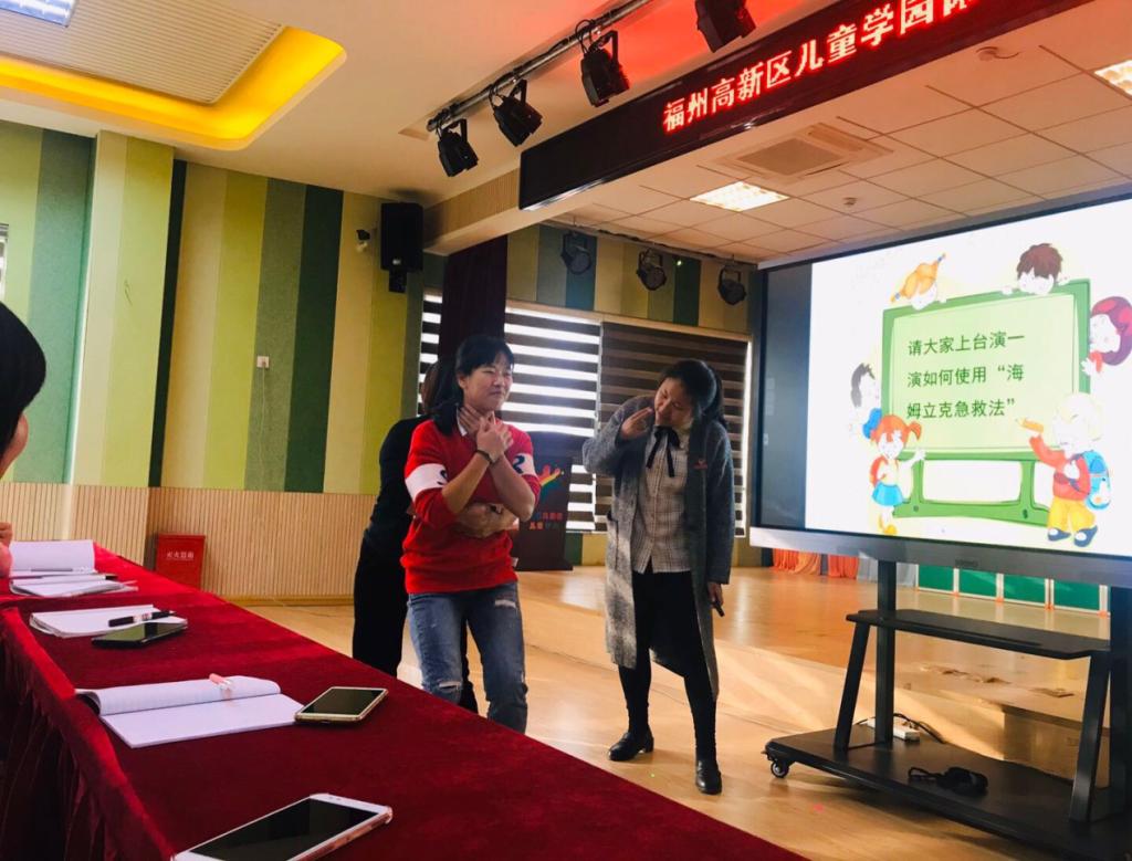 2019年11月29日下午,臨床醫(yī)學系在福州高新區(qū)兒童學園舉辦了關于“保育員衛(wèi)生保健”的技能培訓科普講座,該活動是2019年福建省科技周暨終身教育活動的一部分,由臨床醫(yī)學系外科教研室巫詩雨老師及閩侯南嶼高新區(qū)兒童學園10余名保育員共同參與。活動開始,巫詩雨老師針對保育員日常工作內(nèi)容的特殊性,通過提問的方式讓座保育員們充分了解到“手衛(wèi)生”的重要性,以及洗手是預防疾病,促進兒童健康成長最簡單、最廉價的健康干預方式。然后通過形象的洗手口訣“內(nèi)、外、夾、弓、大、立、腕”現(xiàn)場演示了標準七步洗手法?;顒拥牡诙糠?,巫詩雨老師圍繞氣道異物梗阻這一常見兒童意外損傷的處理方法,以“他救、自救、特殊人群救治”三方面深入淺出地為各位保育員進行了“海姆立克急救法”的講解,并現(xiàn)場示范教學與大家進行互動。