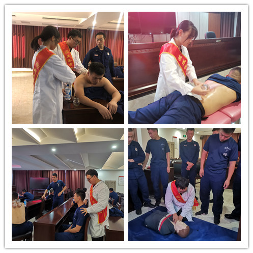活動伊始,蔡老師為10余名消防隊員詳細(xì)地講解了心肺復(fù)蘇術(shù)的重要性和具體的操作要領(lǐng),隨后由康樂工作室負(fù)責(zé)人莊俊榮同學(xué)進(jìn)行現(xiàn)場演示?,F(xiàn)場消防員們表示了極大的興趣,并積極踴躍的進(jìn)行練習(xí)。接著,針對消防員訓(xùn)練過程中常見的運動損傷,蔡老師與康樂工作室的同學(xué)們還為他們提供了針灸、推拿、拔罐等中醫(yī)特色義診活動,受到了他們的好評和歡迎。