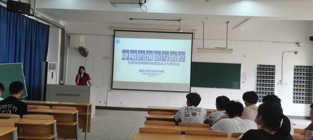 為推進(jìn)2021年全國(guó)科技活動(dòng)暨福建衛(wèi)生職業(yè)技術(shù)學(xué)院2021年職業(yè)教育活動(dòng)周工作的有序開(kāi)展,5月27日下午,由醫(yī)學(xué)系內(nèi)科教研室組織、黨員教師彭小蕊主講的關(guān)于《哮喘的預(yù)防和治療》科普講座在實(shí)訓(xùn)樓314室開(kāi)展。