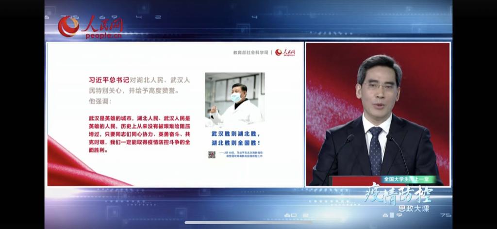 由于網(wǎng)絡擁擠,許多同學無法進入直播,努力嘗試各種平臺同步看到了炙手可熱的“全國大學生同上一堂疫情防控思政大課”。艾四林教授“在抗擊疫情斗爭中深化理論認識”。立足中國抗擊疫情的具體實踐,引導學生深化對馬克思主義基本理論的認識、深化對馬克思主義中國化最新成果的認識。秦宣教授“疫情大考告訴我們什么”。分析中國抗疫彰顯的中國共產(chǎn)黨領導和中國特色社會主義制度的顯著優(yōu)勢。王炳林教授“總結(jié)歷史經(jīng)驗,增強必勝信心”。從我國歷史上的防疫斗爭歷程出發(fā),分享從磨難中奮起、化危機為轉(zhuǎn)機的歷史經(jīng)驗和智慧。馮秀軍教授“戰(zhàn)‘疫’里的最美青春——談中國青年的責任與擔當”以戰(zhàn)“疫”里的青年責任與擔當為主題,深情講述這場疫情中勇敢逆行的年輕風景,引導大學生群體擔當歷史使命,將青春夢想扎根祖國的廣袤大地。